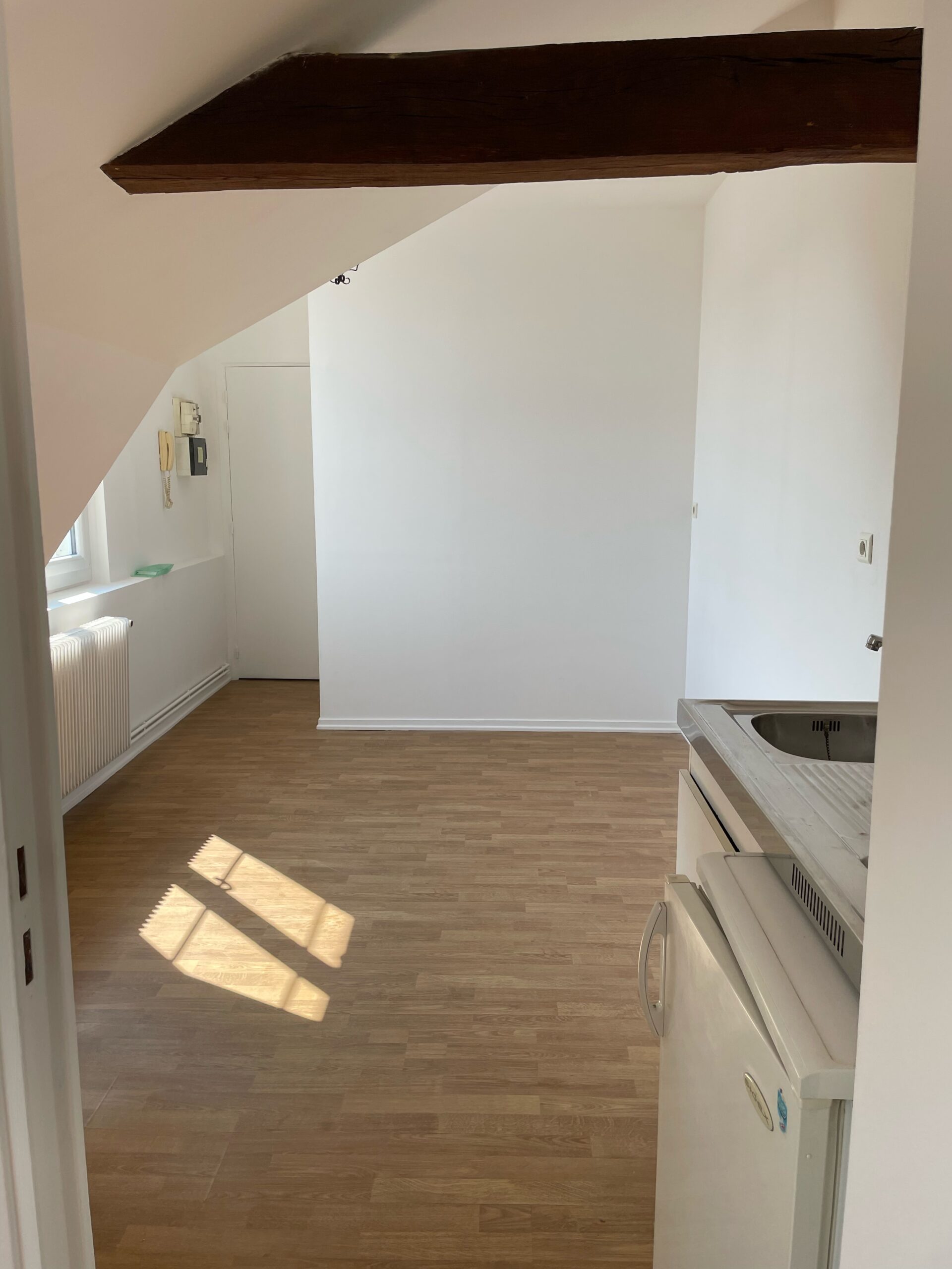 Appartement de 19 m² au deuxième étage situé en résidence sécurisée au Neubourg comprenant : une pièce principale avec un coin cuisine aménagé, une chambre et une salle d’eau avec WC.