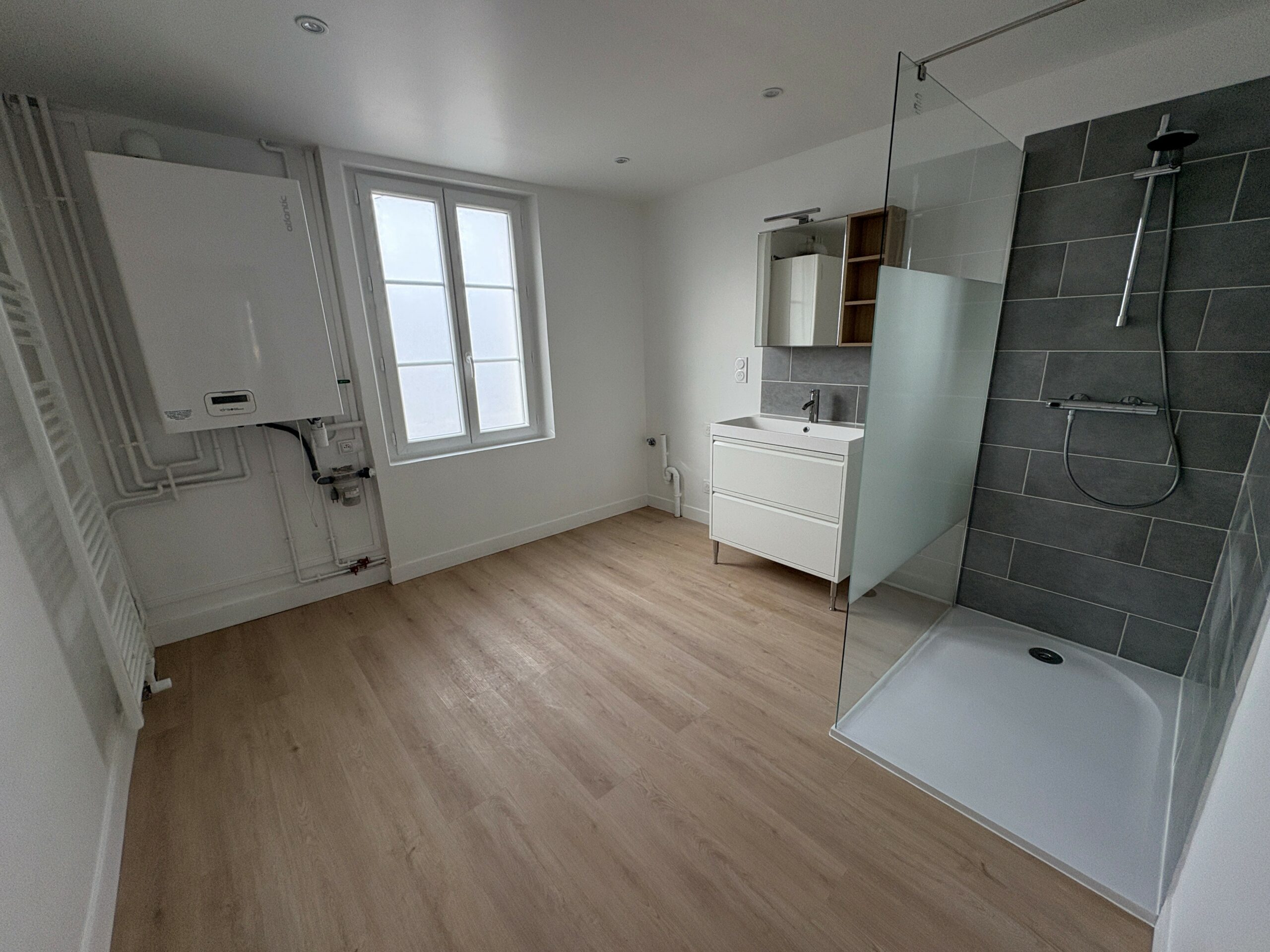 Appartement au deuxième étage de 66m² situé à Le Neubourg comprenant : une entrée, une pièce principale ouverte sur une cuisine aménagée et partiellement équipée, deux chambres, une salle d’eau et WC séparés.