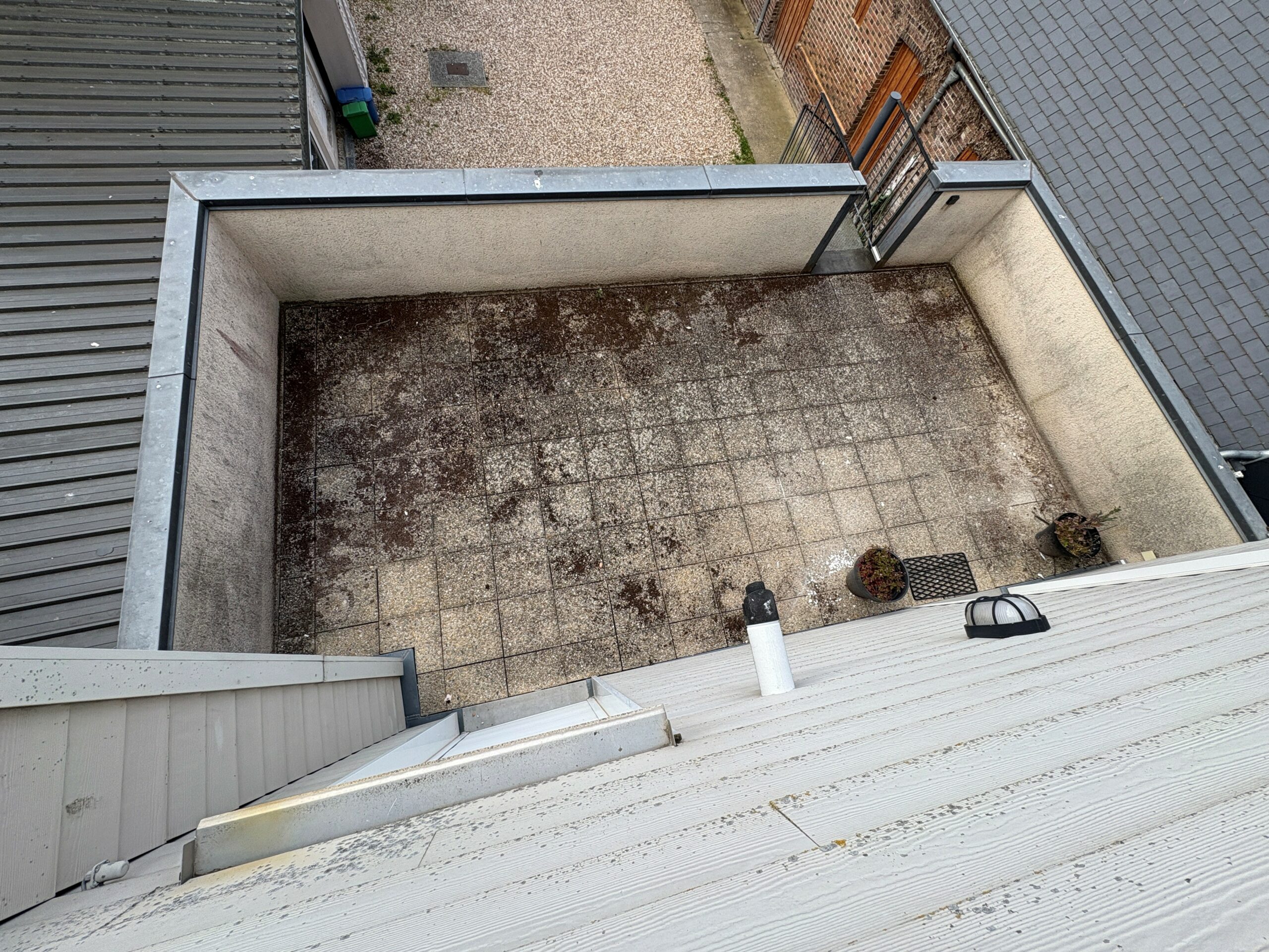 Une place de parking et une terrasse