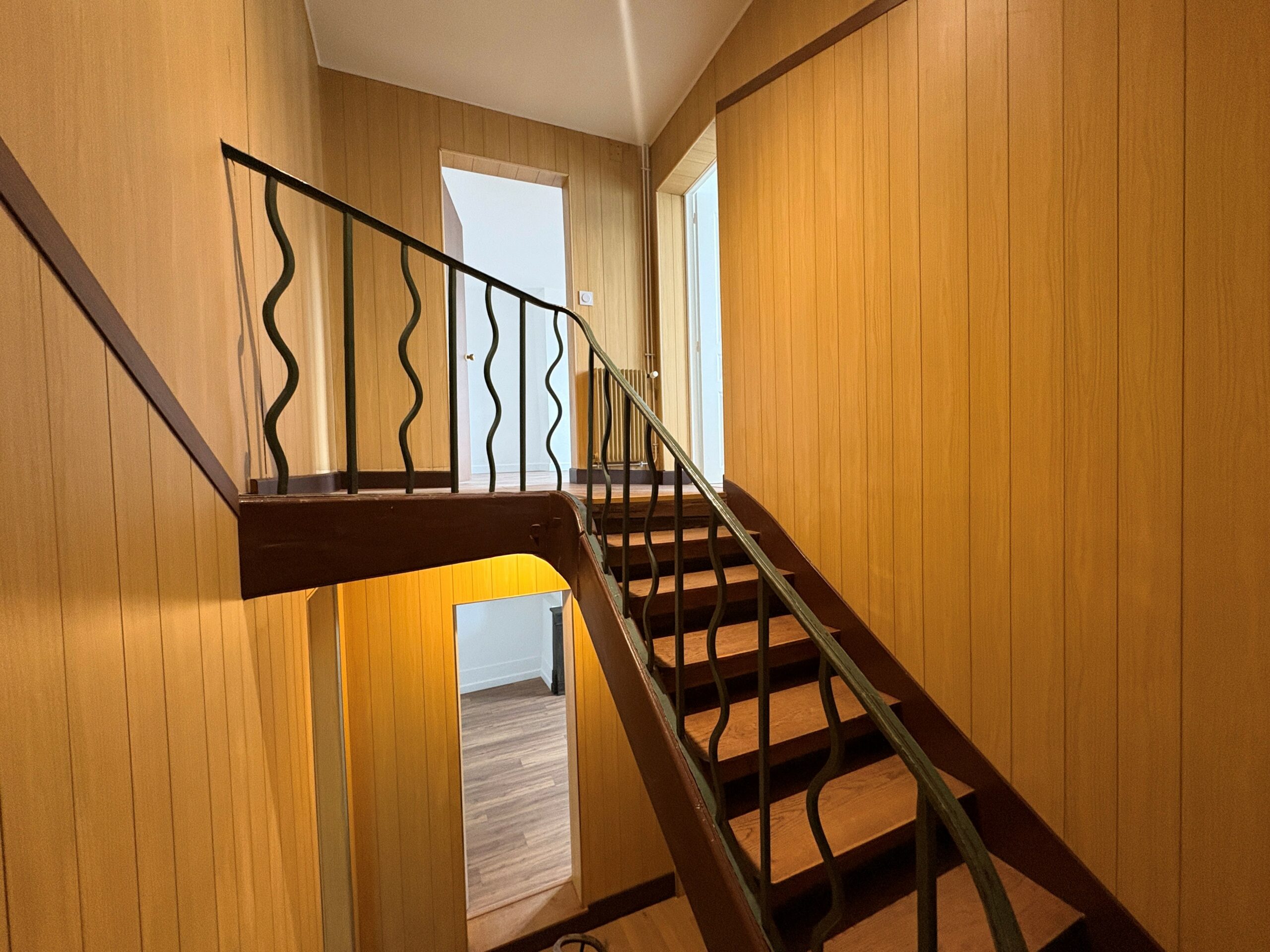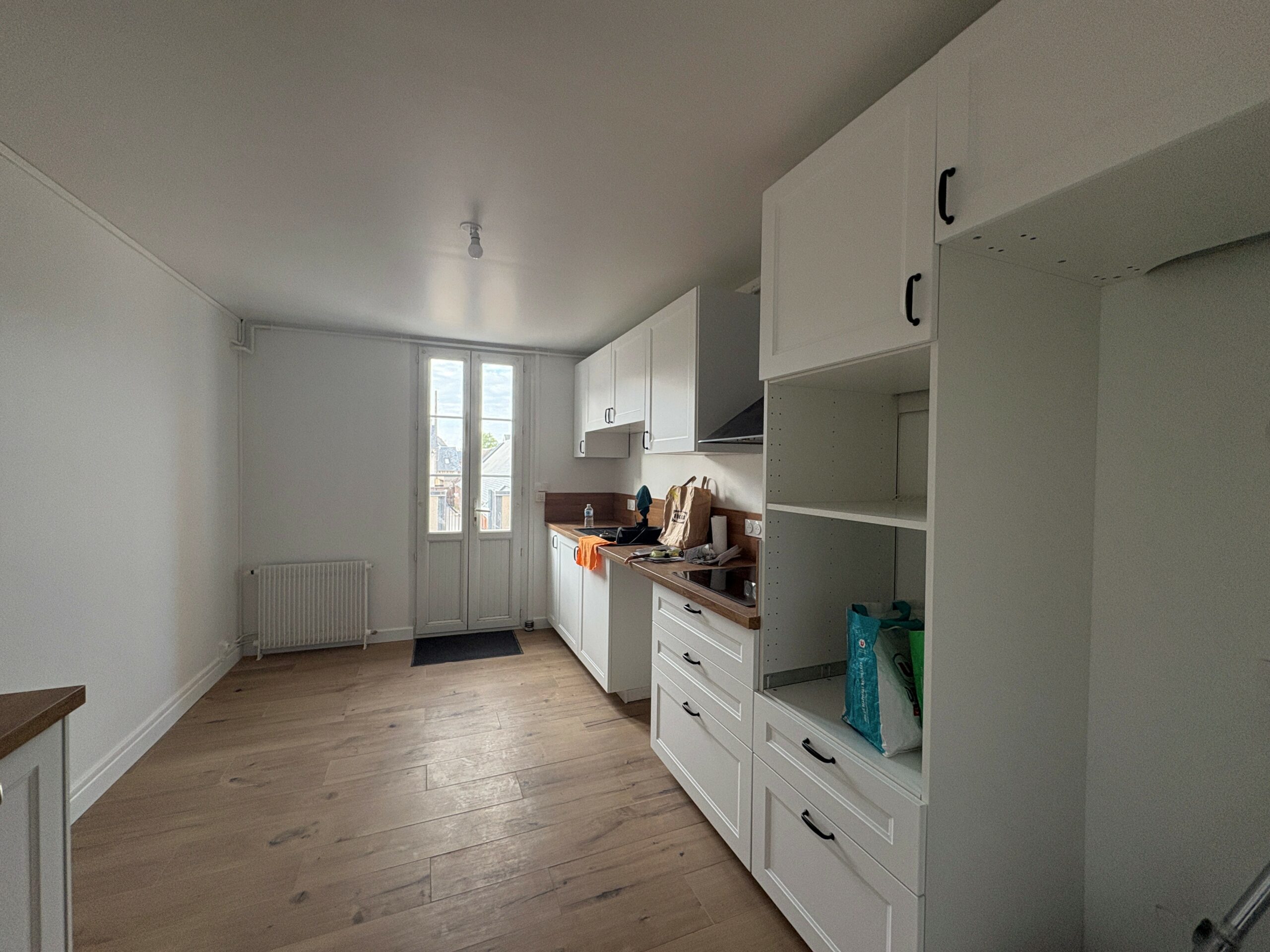 Appartement au premier étage de 107m² situé à Le Neubourg comprenant : une entrée, une cuisine aménagée et partiellement équipée, un séjour, deux chambres, un dressing, une salle d’eau et WC séparés.