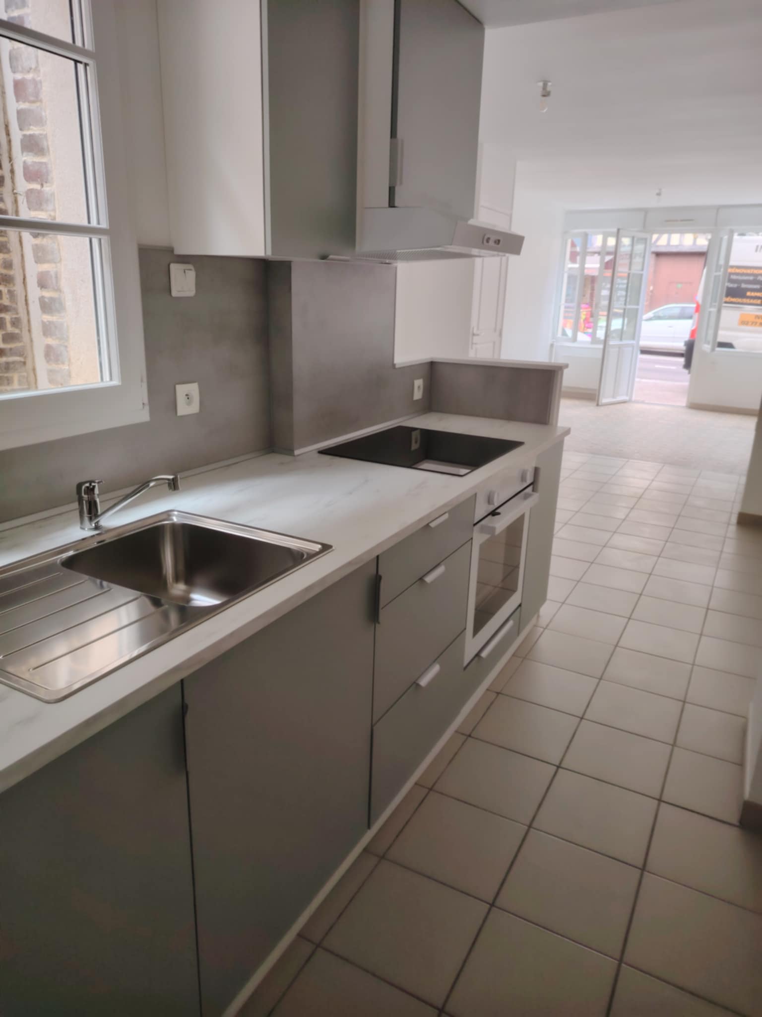 Appartement de plain-pied de 49 m² situé en résidence sécurisée à Bourgtheroulde comprenant : une pièce principale avec un coin cuisine aménagé et partiellement équipé, une salle d’eau, WC séparés et une chambre.