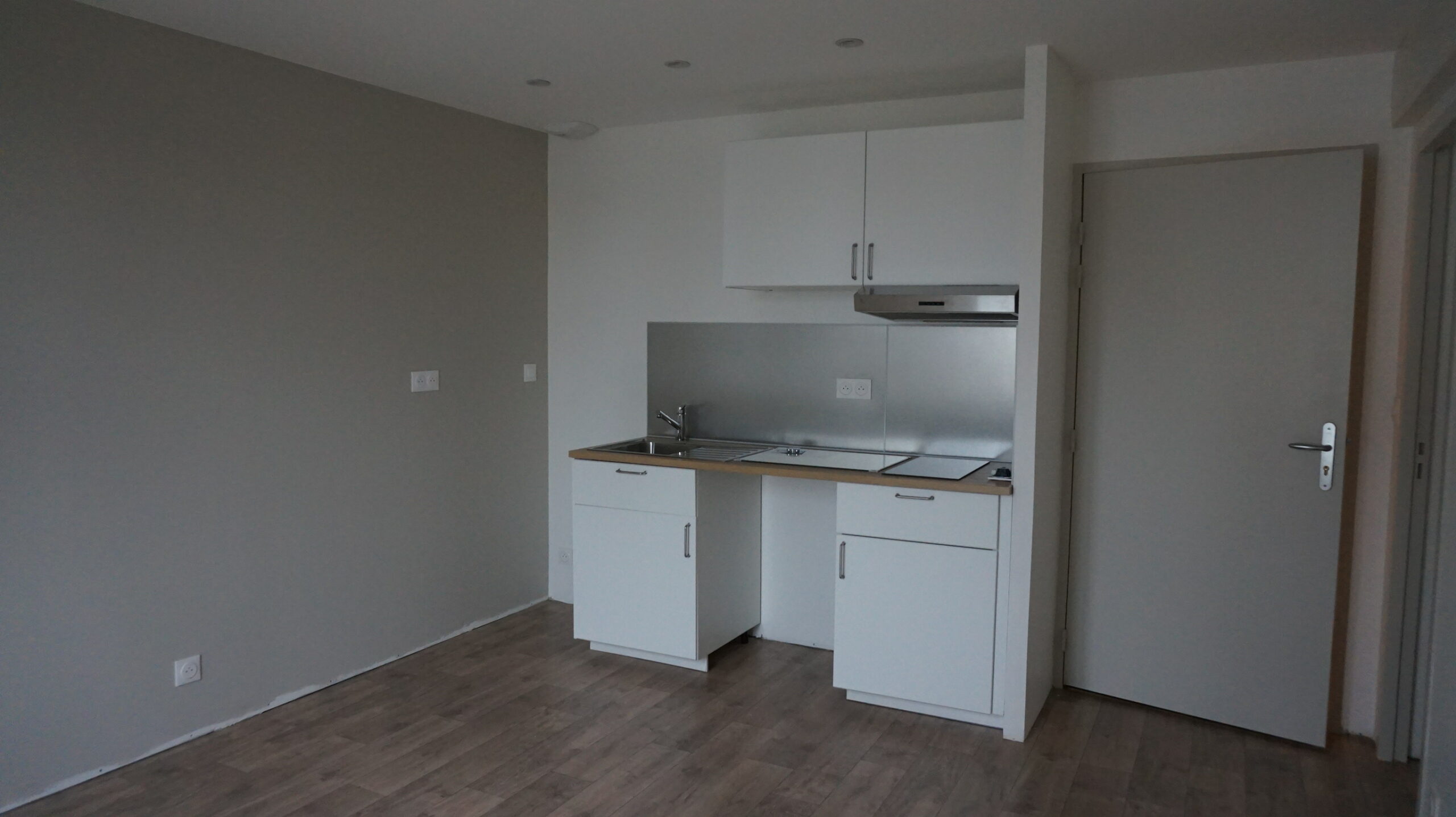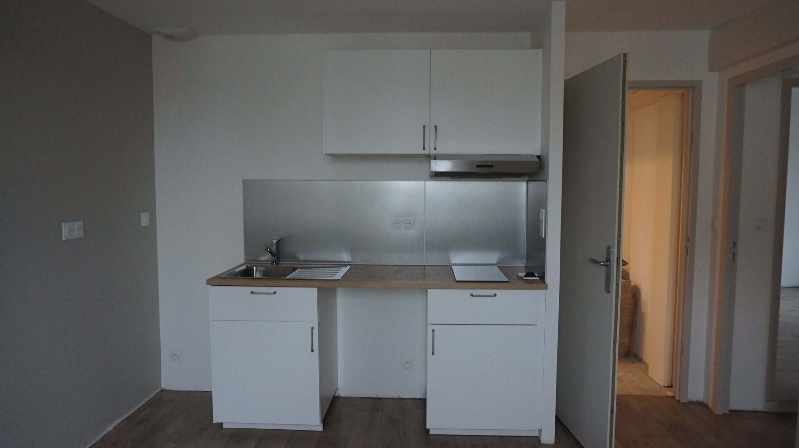 Appartement au premier étage de 48 m² situé en résidence sécurisée à Le Neubourg comprenant : une pièce principale avec un coin cuisine aménagé et partiellement équipé, une salle d’eau avec WC et deux chambres.