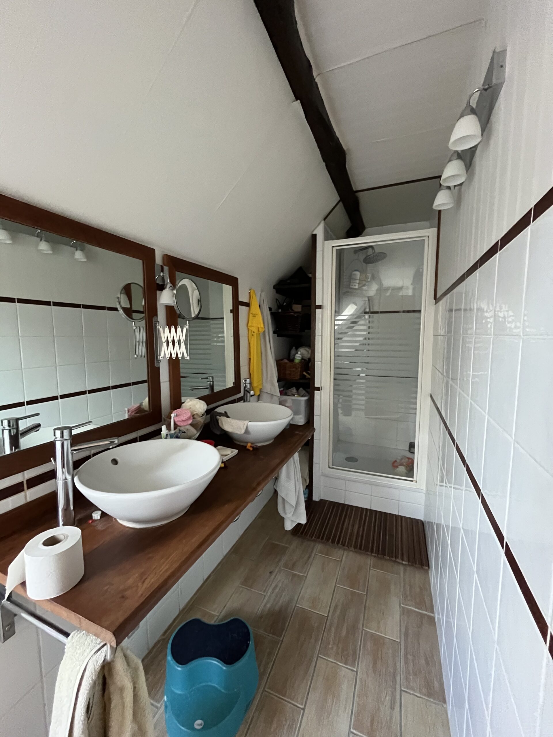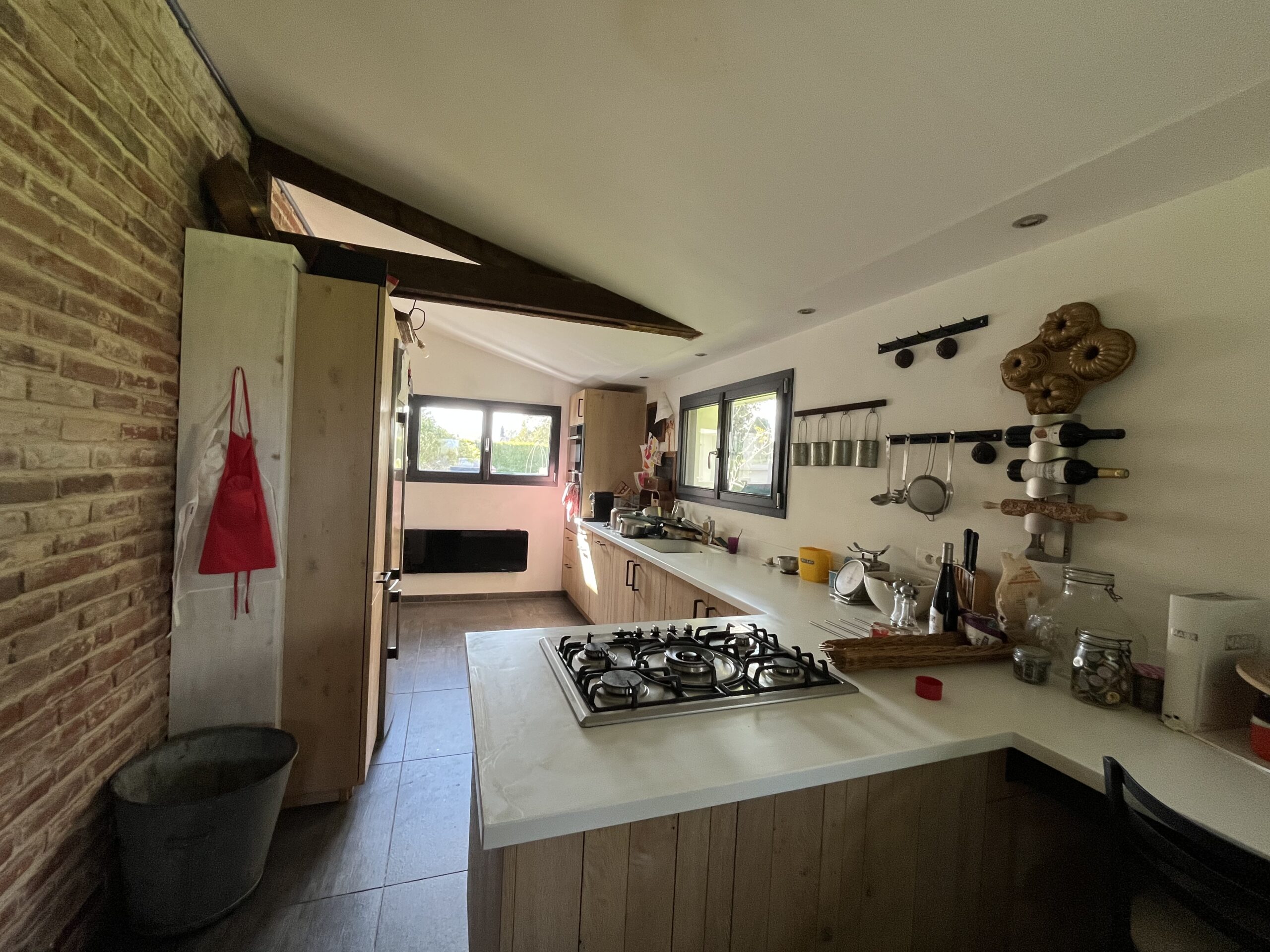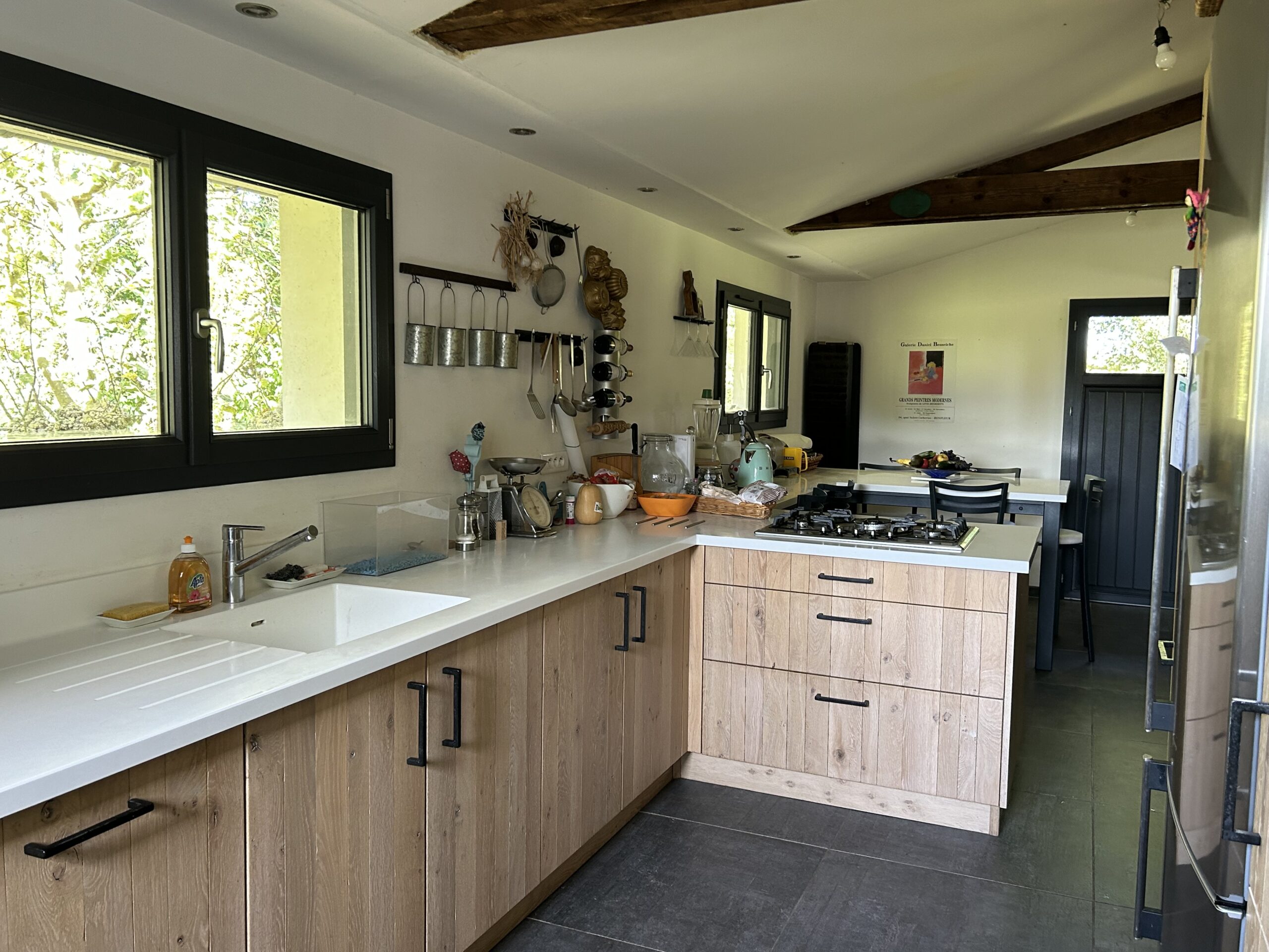 Maison comprenant au rez-de-chaussée : une entrée avec placards, WC séparés, une pièce principale avec cheminée ouverte, une cuisine aménagée et équipée, une buanderie et une chambre avec douche et point d’eau. A l’étage : une mezzanine, un dressing, trois chambres et une salle de bains avec douche, baignoire et WC.Un terrain clos, une cave, un bâtiment et une terrasse.