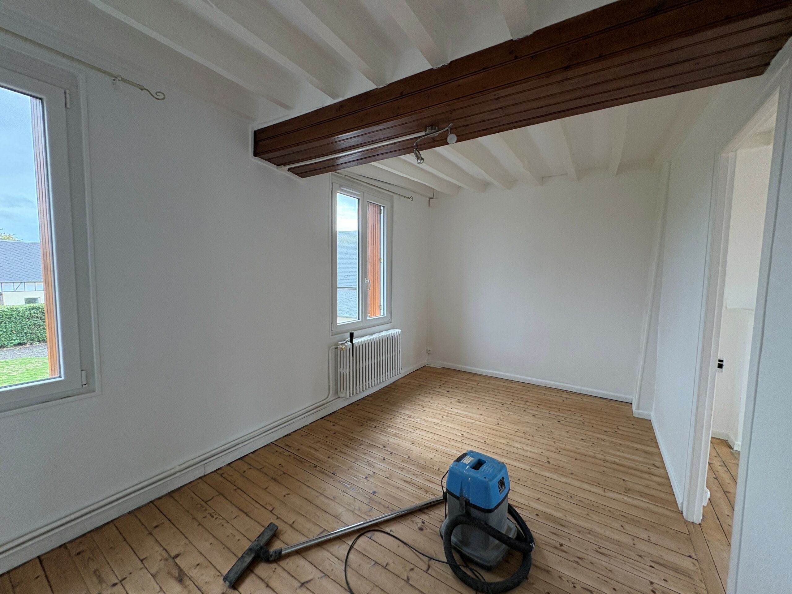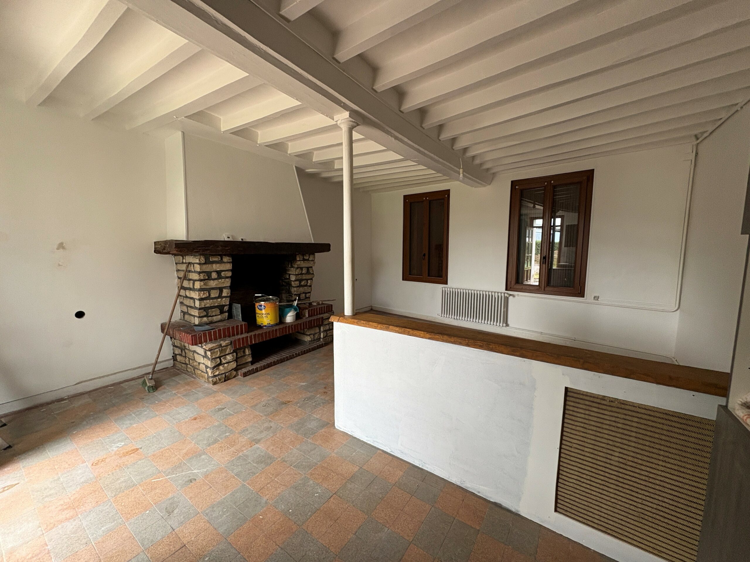 Maison de 128 m² située à Fouqueville comprenant au rez-de-chaussée : une entrée, une cuisine aménagée ouverte sur une pièce principale, un séjour, WC séparés.