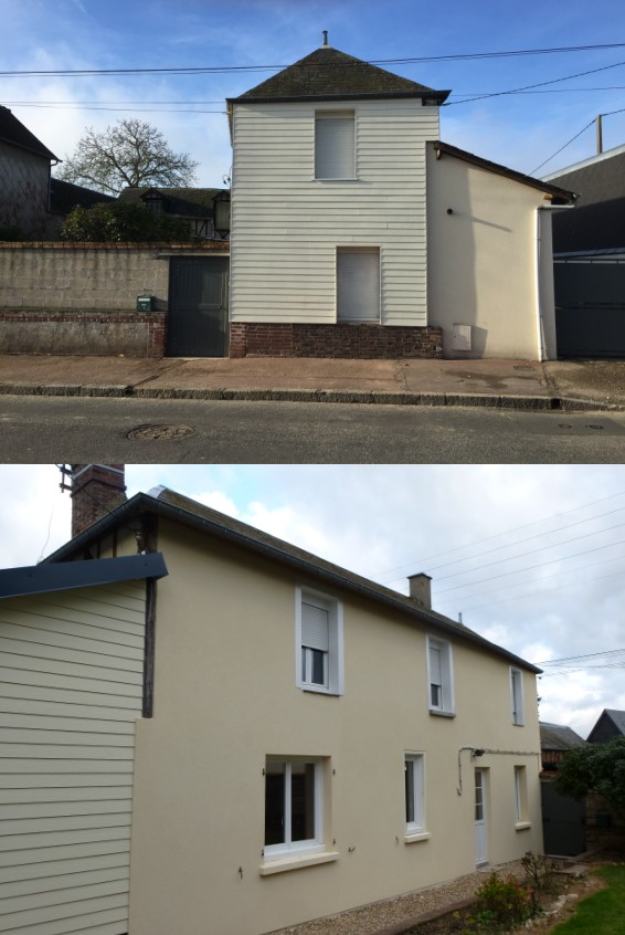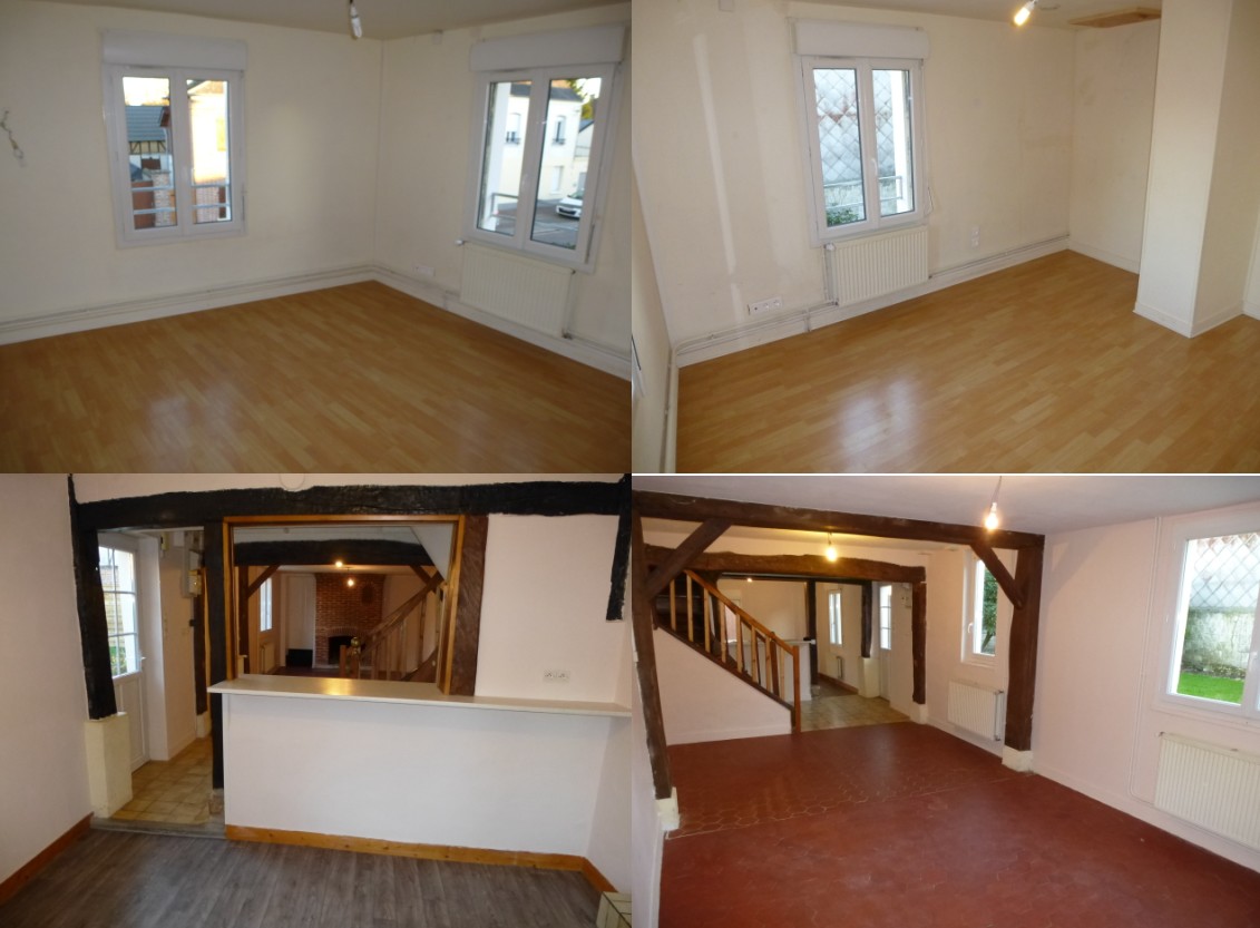 Maison de 102 m² située à Le Neubourg comprenant au rez-de-chaussée : une salle, un salon, une cuisine aménagée et partiellement équipée, un cellier, WC séparés, une salle d’eau, une chambre.