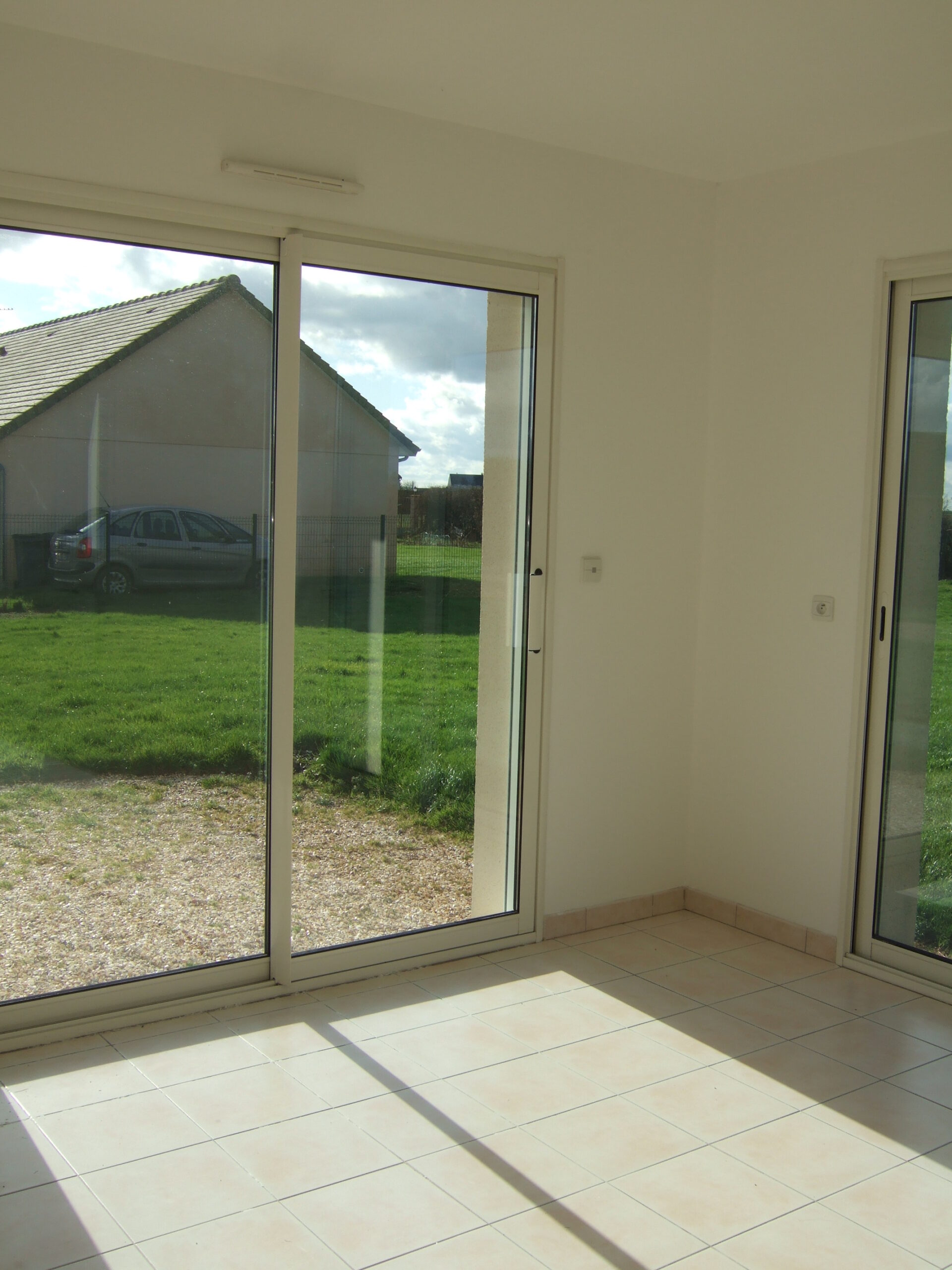 Maison de plain-pied de 89 m² située à Quatremare comprenant : une pièce principale ouverte sur une cuisine, trois chambres, WC séparés, une salle d’eau, un cellier.