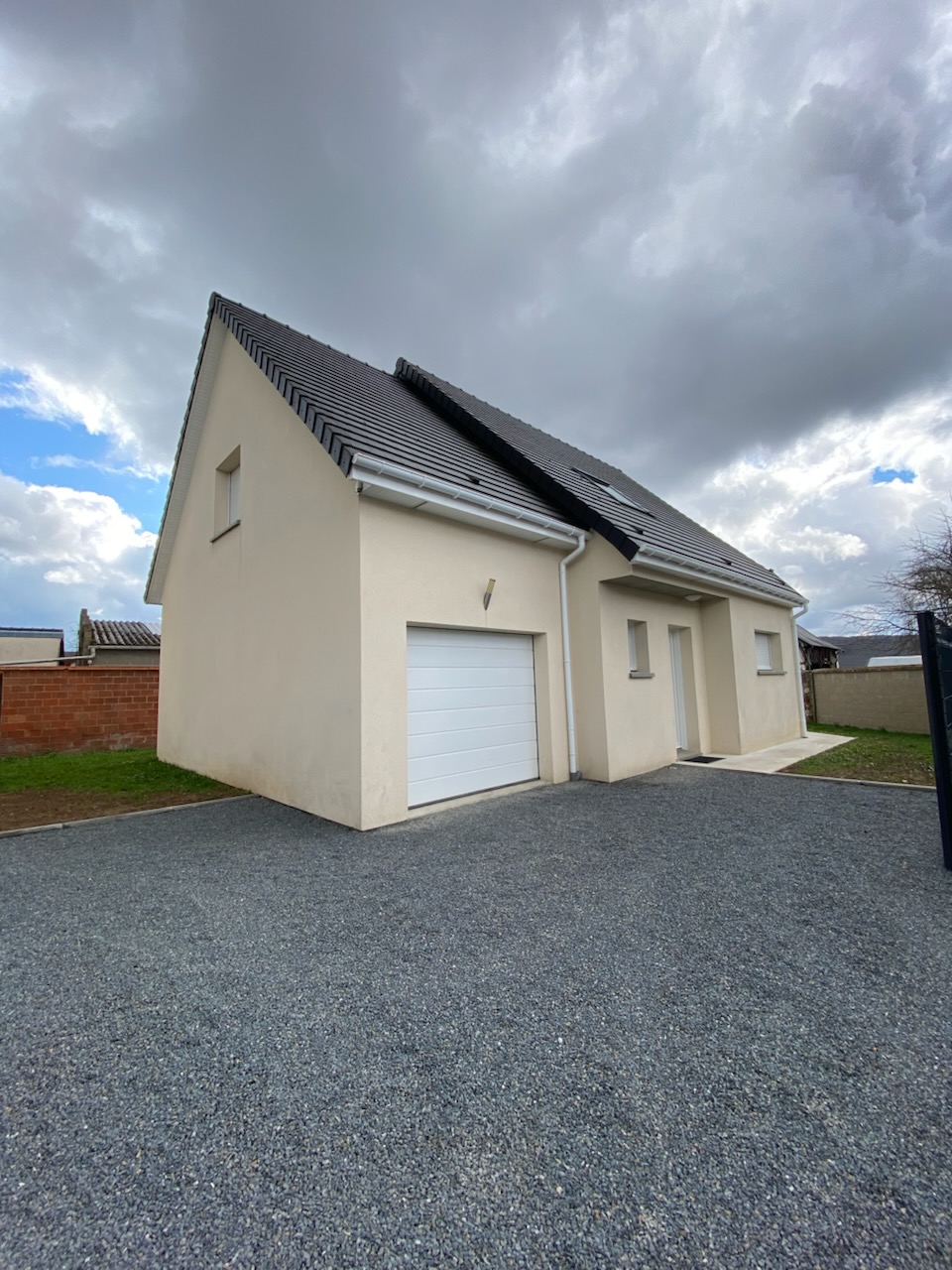 Maison de 110 m² située à Saint-Pierre-lès-Elbeuf comprenant au rez-de-chaussée : une pièce principale ouverte sur une cuisine aménagée, WC séparés, une salle d’eau et un cellier.
